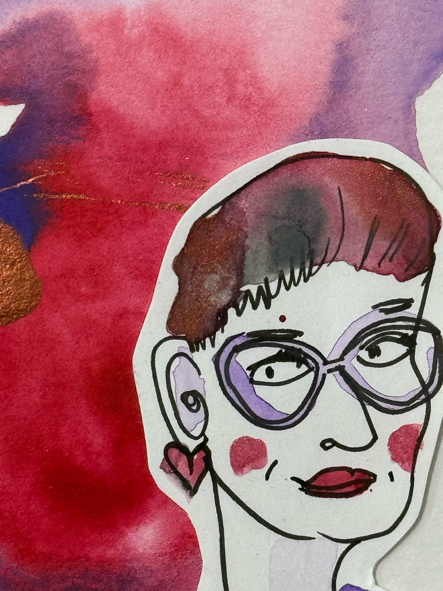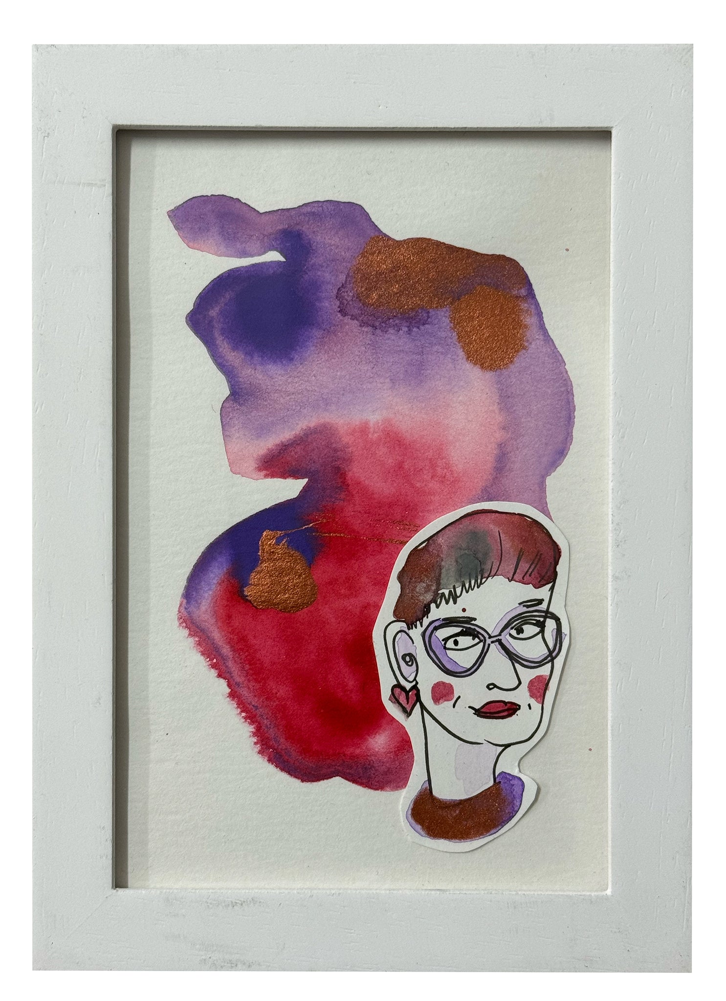 Tusche auf Papier, collagiert, Zeichnung DIN A6 Rahmen: 10 x 15 cm,